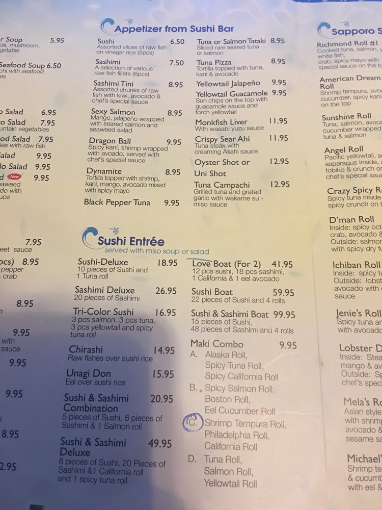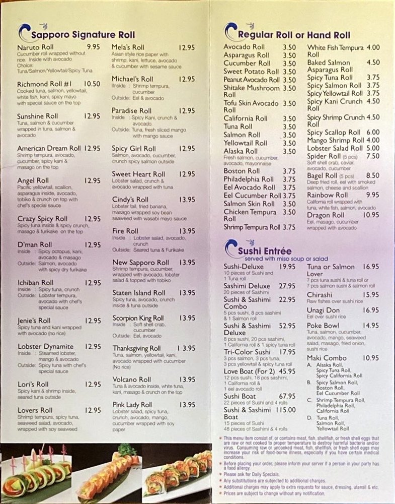 Sapporo Sushi House, located in Staten Island, NY, offers a casual dining experience with a variety of sushi options from their lunch menu. Customers praise the fresh ingredients, generous portions, and reasonable prices. Reviewers appreciate the friendly staff, good service, and pleasant ambiance. The Kinja Bento and Sushi Bento lunch specials are popular choices, along with a variety of sushi rolls. While some customers have preferences for certain types of rice or rolls, overall, the sushi is considered fresh and delicious. The restaurant also provides takeout and delivery options, making it convenient for customers to enjoy their favorite dishes at home. Whether you're looking for a quick lunch or a relaxed dinner with friends and family, Sapporo Sushi House is a recommended spot for a satisfying sushi experience.